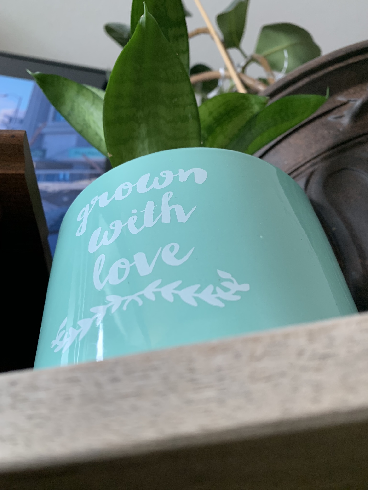 Lastly, I chose my ever growing Snake Plant for perspective. It’s really only about 6″ tall and the pot maybe 5″ round. But I love how it appears huge like this and the stand it sits upon is a blur of a solid object here in the front. Then you have my everlasting ficus in the background peeking through to say hello, almost like it is waving.